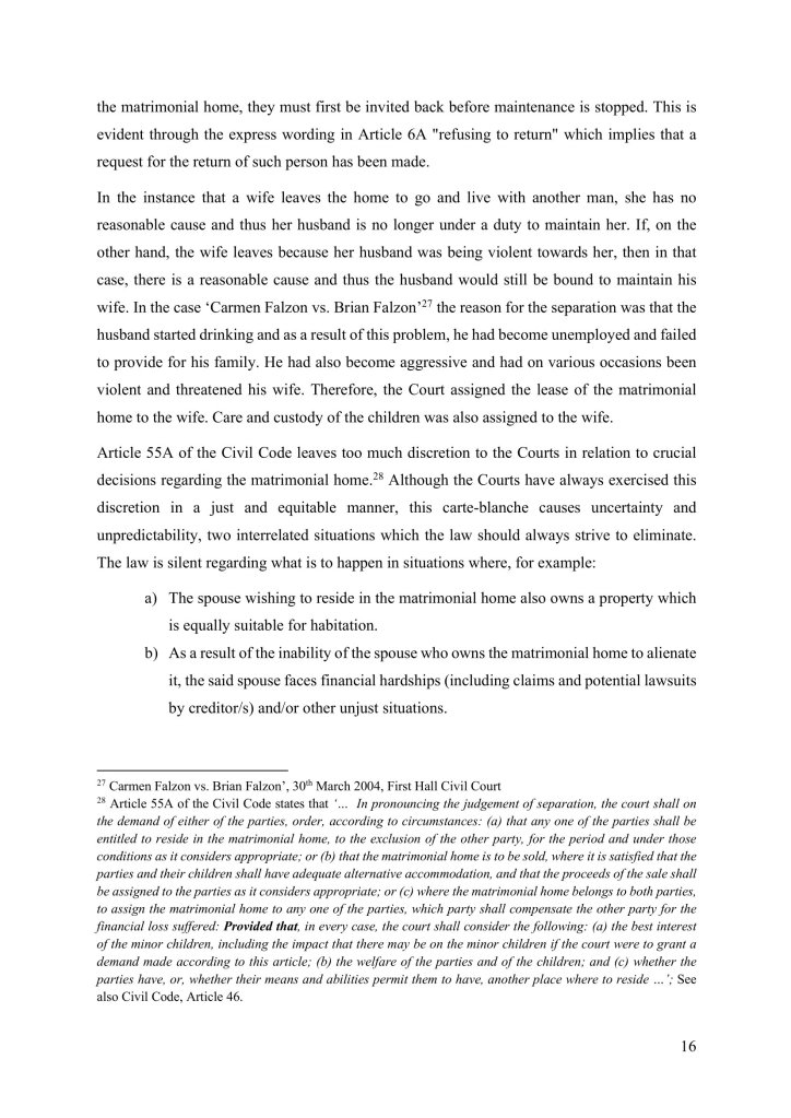 Does true equality exist in marriage and parenthood? A Maltese Law Perspective