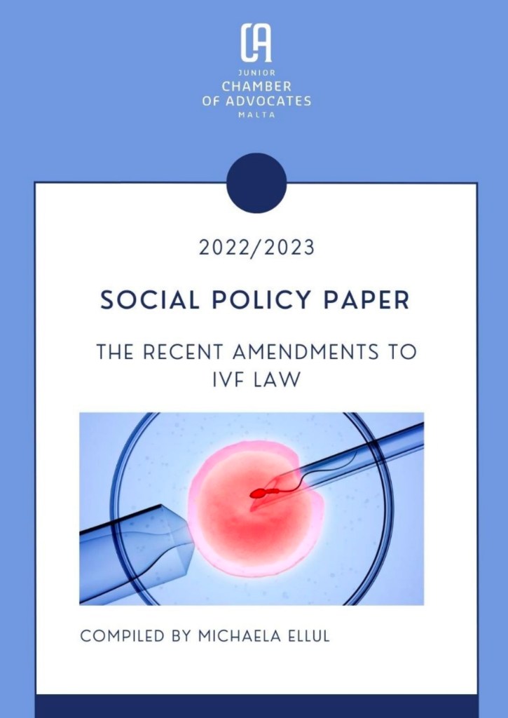 Check out our Social Policy Paper, titled ‘The Recent Amendments to IVF Law’, compiled by JCA’s Social Policy Officer, Michaela Ellul, after researching the topic and holding discussions and consulting with Dr. Daniel Bianchi, one of Malta’s most reputable authorities in the area of medicine and law.