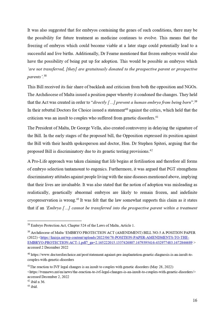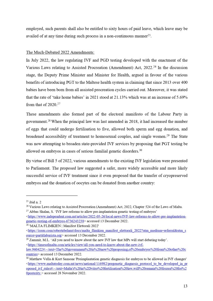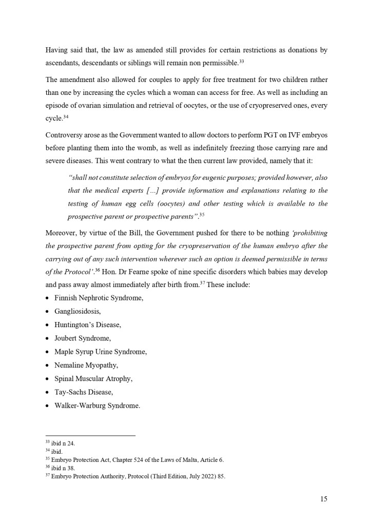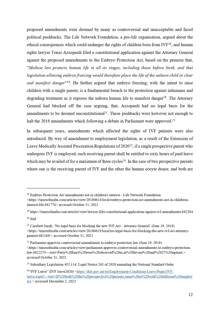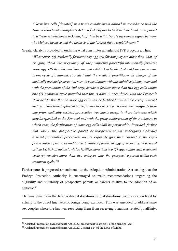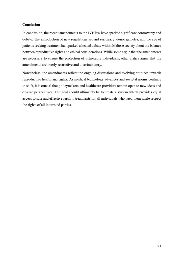“The recent amendments to the IVF law have sparked significant controversy and debate. The introduction of new regulations around surrogacy, donor gametes, and the age of patients seeking treatment has sparked a heated debate within Maltese society about the balance between reproductive rights and ethical considerations. While some argue that the amendments are necessary to ensure the protection of vulnerable individuals, whilst other critics argue that the amendments are overly restrictive and discriminatory.”