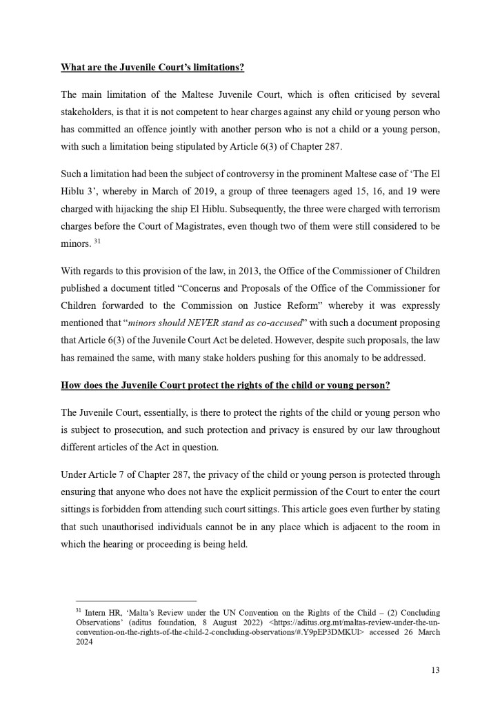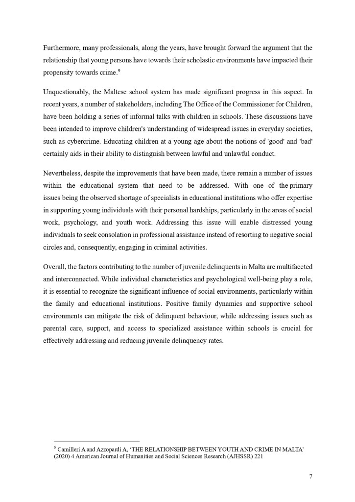 Check out our Social Policy Paper, titled ‘Juvenile Justice: Bridging Compassion with Accountability in Malta’, compiled by JCA’s Social Policy Officer, Shazney Vella, after researching the topic and holding discussions and consulting with the Office of the Commissioner for Children.